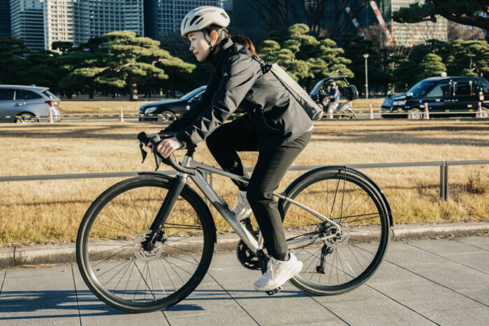 アップライトな姿勢、32Cのタイヤ、そして専用の前後フェンダーとリアキャリアを取り付けることにより、少し長めの距離の通勤、通学などでも安心して走ることができます。
